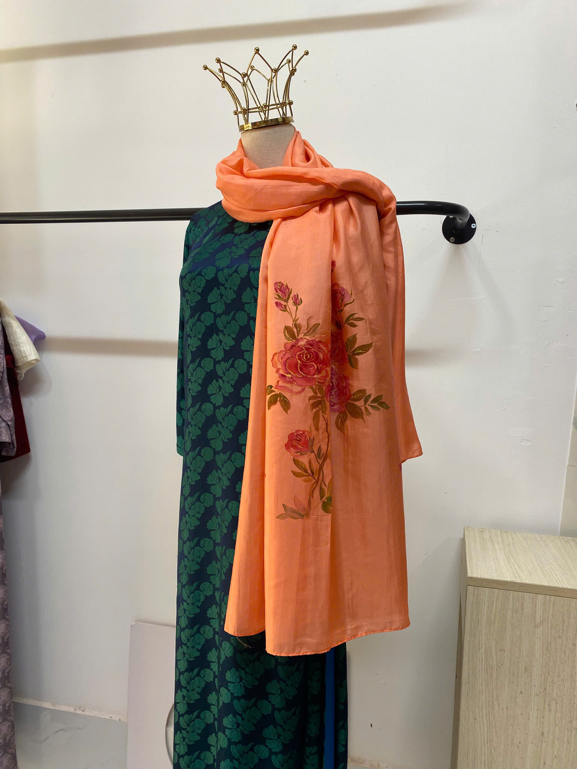 Khăn lụa vẽ nghệ thuật Hoa Hồng : Kt 80 x 180cm thuộc dòng sản phẩm khăn lụa vẽ tay thủ công cao cấp của VanPhucSilk. Được dệt thủ công bởi nghệ nhân tại làng lụa Nha Xá, một làng nghề có lịch sử 800 năm truyền lại qua nhiều thế hệ của nghề dệt lụa truyền thống Việt Nam.