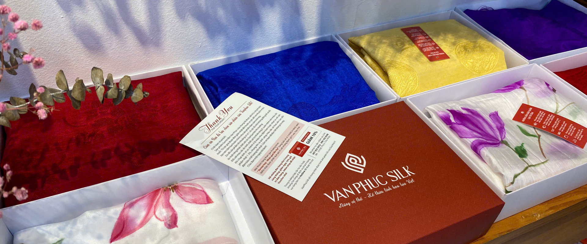 Từ câu chuyện đó, SHOP VẠN PHÚC SILK ra đời – như một nhịp cầu đưa lụa tơ tằm truyền thống chạm đến trái tim của những người yêu cái đẹp. Từng tấm lụa, từng chiếc khăn lụa vẽ tay ở đây đều được dệt thủ công từ tơ tằm nguyên chất, mang theo hơi thở cổ truyền, nhưng được thổi hồn hiện đại qua từng mẫu thiết kế thời thượng.